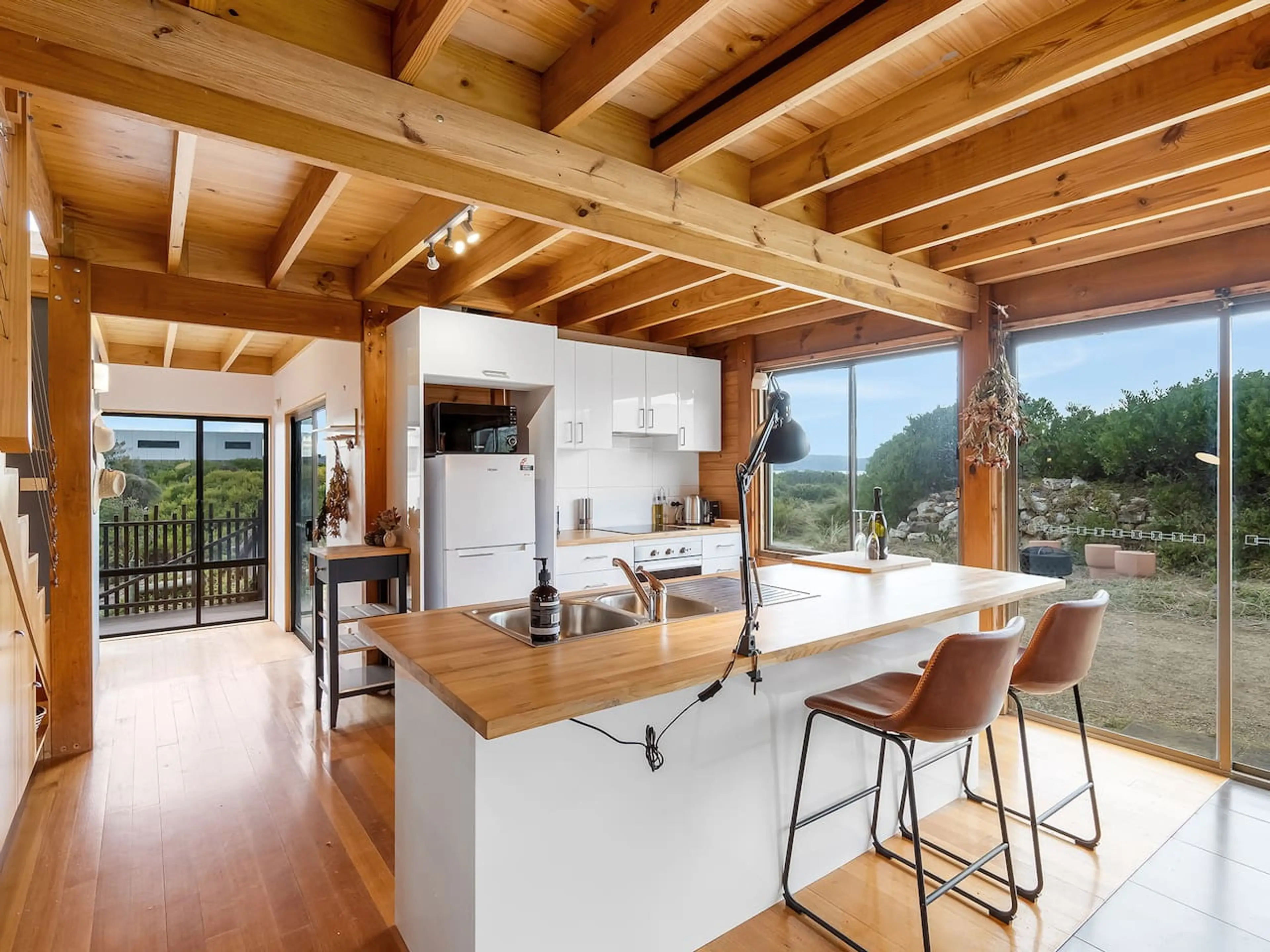 Uniquely handcrafted with warm timber tones, luxurious textiles and personal touches that combine to create an experience you will always remember. Full of warmth & character, our beachfront cabin invites you to relax, unwind and just soak up the tranquillity, solitude and surrounding ocean views.\...