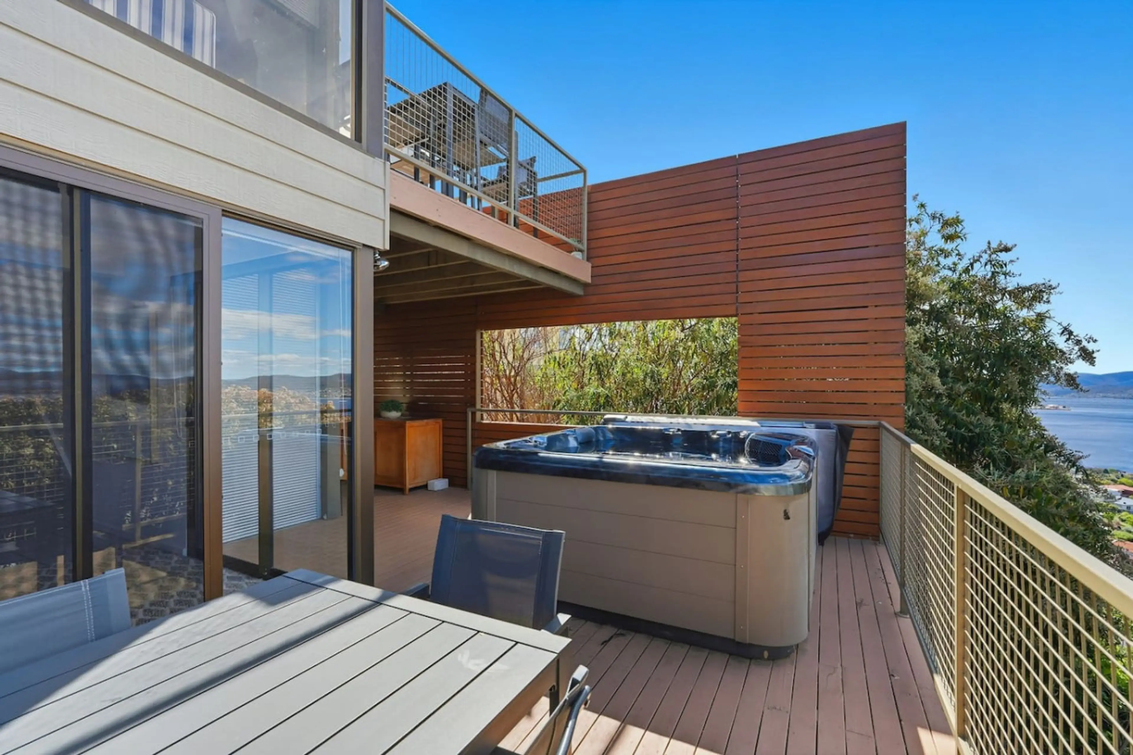 Unwind in absolute comfort at Marlborough Street — a grand Sandy Bay residence offering stunning Derwent River views and a luxurious outdoor hot tub. With three spacious living areas, two dining zones, and a designer kitchen, it’s perfect for families or groups seeking space and style. Watch yachts ...
